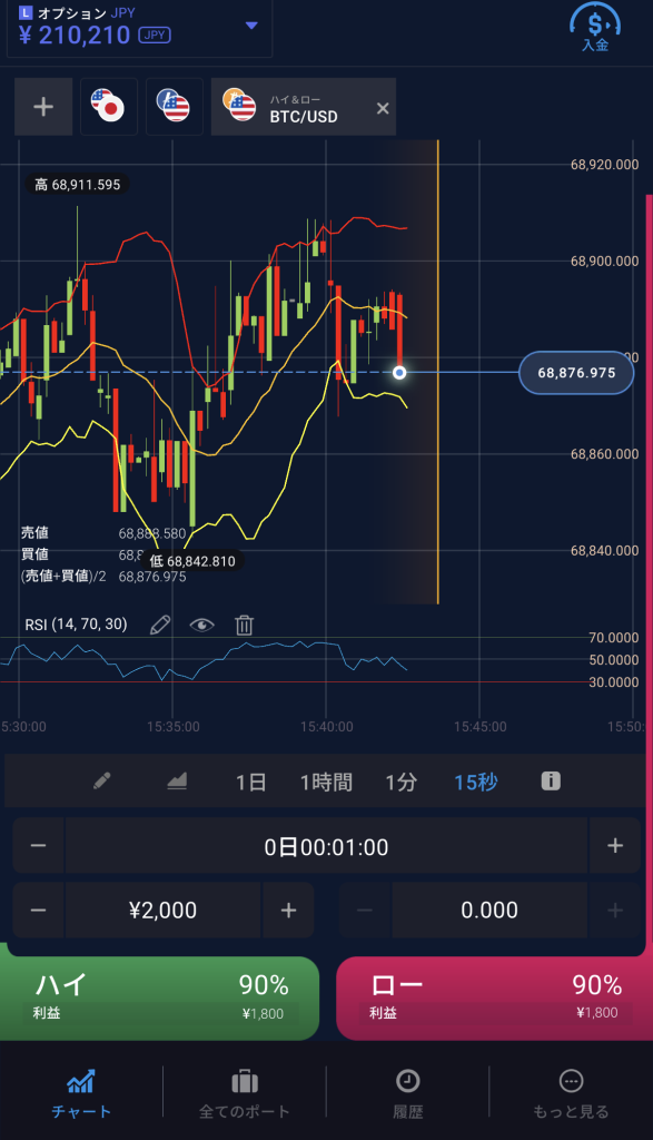 プラットフォームは非常にモダンで、無駄な装飾がありません。チャート上にテクニカル指標(RSIやボリンジャーバンド等)を直接表示できるため、MT4を別で開く手間が省ける場面もありました。スマホでのチャートも十分見やすく手実用的です。