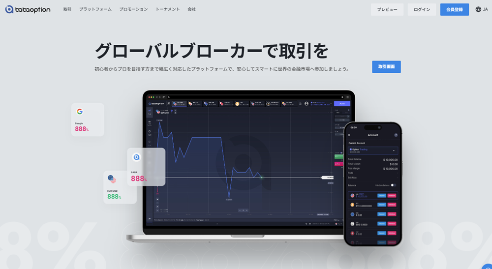 非常に魅力的なボーナスと高ペイアウトの取引環境を提供しており、ブビンガやザオプションの強力なライバルになる可能性を秘めています。