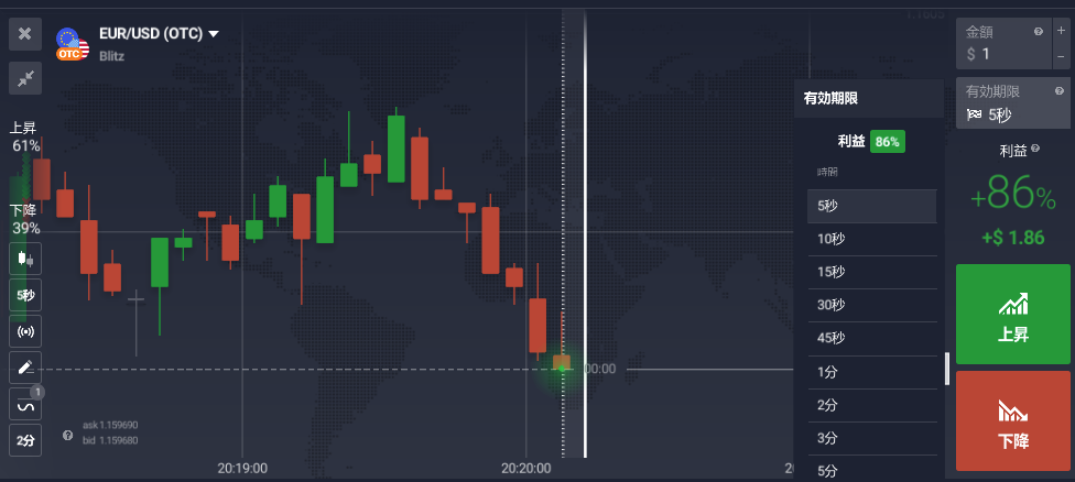 業界最速5秒取引+高ペイアウトの3種類のバイナリー取引が可能