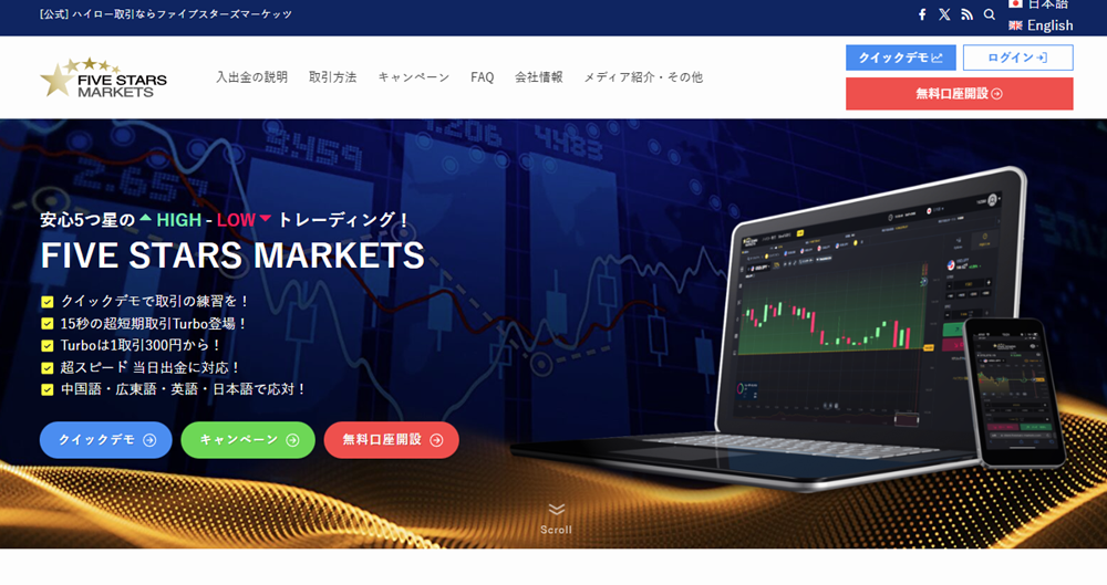 15秒取引は業界最高水準の200%のペイアウト。短期取引に強い業者です。